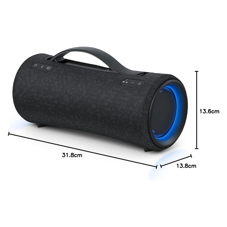 Loa Sony SRS-XG300 có kích thước (W x H x D) 318 x 138 x 136 mm và trọng lượng 3 kg, phù hợp với không gian sống đa dạng và linh hoạt. Thiết kế nhỏ gọn giúp dễ dàng chuyển đổi và bố trí loa trong không gian sống của bạn, mang đến âm thanh chất lượng cao ở mọi nơi. Ngoài ra loa trang còn có thêm quai xách thông minh giúp việc di chuyển thuận tiện hơn nhiều so với các loại loa khác, khi không cần thiết, quai có thể được thu gọn xuống để đảm bảo tính thẩm mỹ của loa.