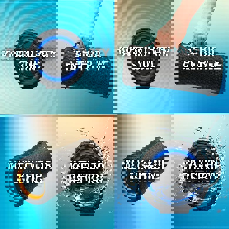 Loa Sony SRS-XG300 được thiết kế với khả năng chống nước chuẩn IP67, giúp bảo vệ loa khỏi hoạt động của nước và Bụi. Bạn có thể sử dụng loa ở những nơi có độ ẩm cao, như bên hồ bơi, bãi biển hoặc trong nhà tắm, mà không ảnh hưởng đến chất lượng âm thanh và tuổi thọ của loa. Xg300 vẫn được trang bị tiêu chuẩn chống đập, bạn sẽ không phải lo lắng về độ bền của chiếc loa này khi mang nó đi khắp nơi.