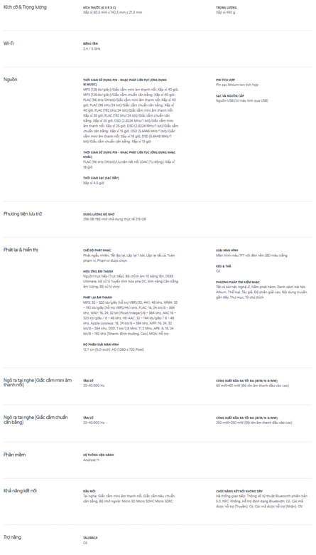 11,2 MHz DSD gốc/PCM 384 kHz 2 Chất lượng đỉnh cao với DSD 11,2 MHz gốc sử dụng tai nghe cân bằng và hỗ trợ PCM 384 KHz/32 bit. |