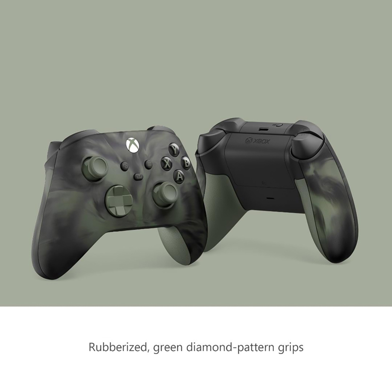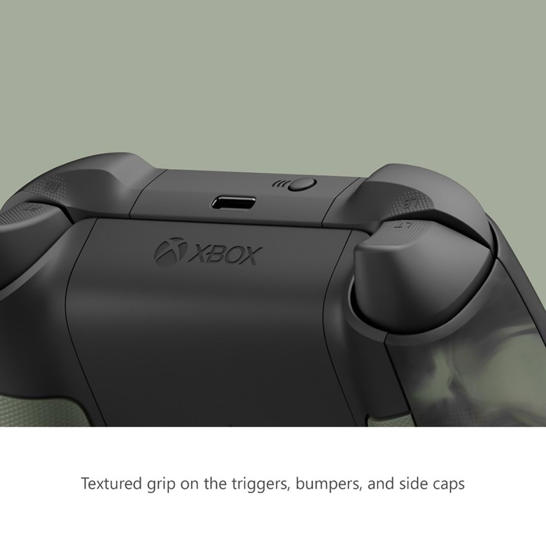 Tay Cầm Chơi Game Xbox Series X Controller có phím điều khiển D-pad lai mới và tay cầm có kết cấu trên cò súng, cản và vỏ sau.